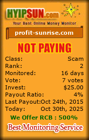 <a href="http://hyipsun.com/details/lid/22/" target="_blank"><img src="http://hyipsun.com/image/lid/22/" border="0" alt="Monitored by HYIPSUN.COM"></a>