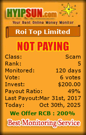 <a href="http://hyipsun.com/details/lid/221/" target="_blank"><img src="http://hyipsun.com/image/lid/221/" border="0" alt="Monitored by HYIPSUN.COM"></a>