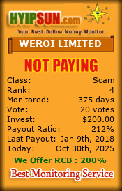 <a href="http://hyipsun.com/details/lid/226/" target="_blank"><img src="http://hyipsun.com/image/lid/226/" border="0" alt="Monitored by HYIPSUN.COM"></a>