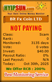 <a href="http://hyipsun.com/details/lid/291/" target="_blank"><img src="http://hyipsun.com/image/lid/291/" border="0" alt="Monitored by HYIPSUN.COM"></a>
