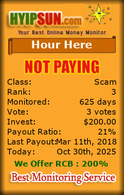 <a href="http://hyipsun.com/details/lid/376/" target="_blank"><img src="http://hyipsun.com/image/lid/376/" border="0" alt="Monitored by HYIPSUN.COM"></a>