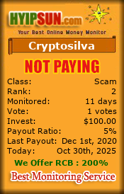 <a href="http://hyipsun.com/details/lid/406/" target="_blank"><img src="http://hyipsun.com/image/lid/406/" border="0" alt="Monitored by HYIPSUN.COM"></a>