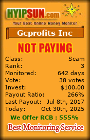 <a href="http://hyipsun.com/details/lid/9/" target="_blank"><img src="http://hyipsun.com/image/lid/9/" border="0" alt="Monitored by HYIPSUN.COM"></a>